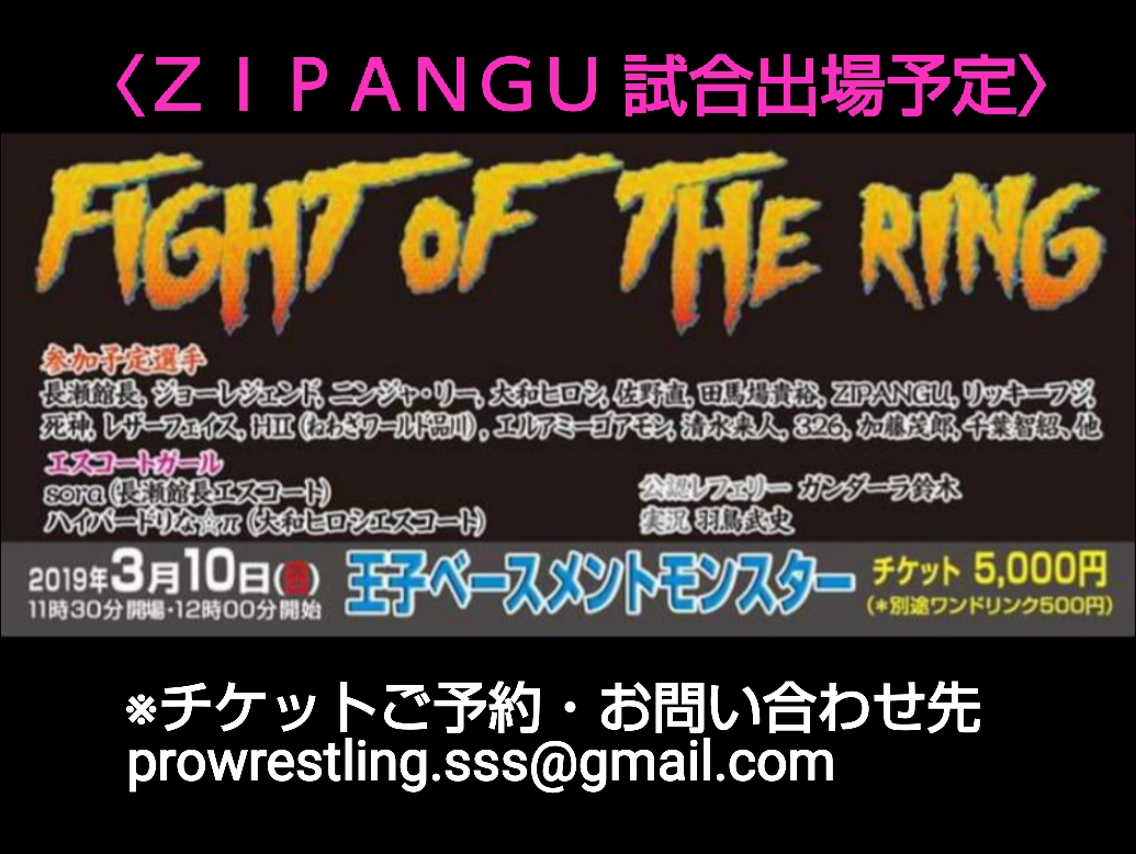 【ZIPANGU参戦情報/対戦カード決定】2019.3.10.ファイト・オブ・ザ・リング『王子ベースメントモンスター大会』